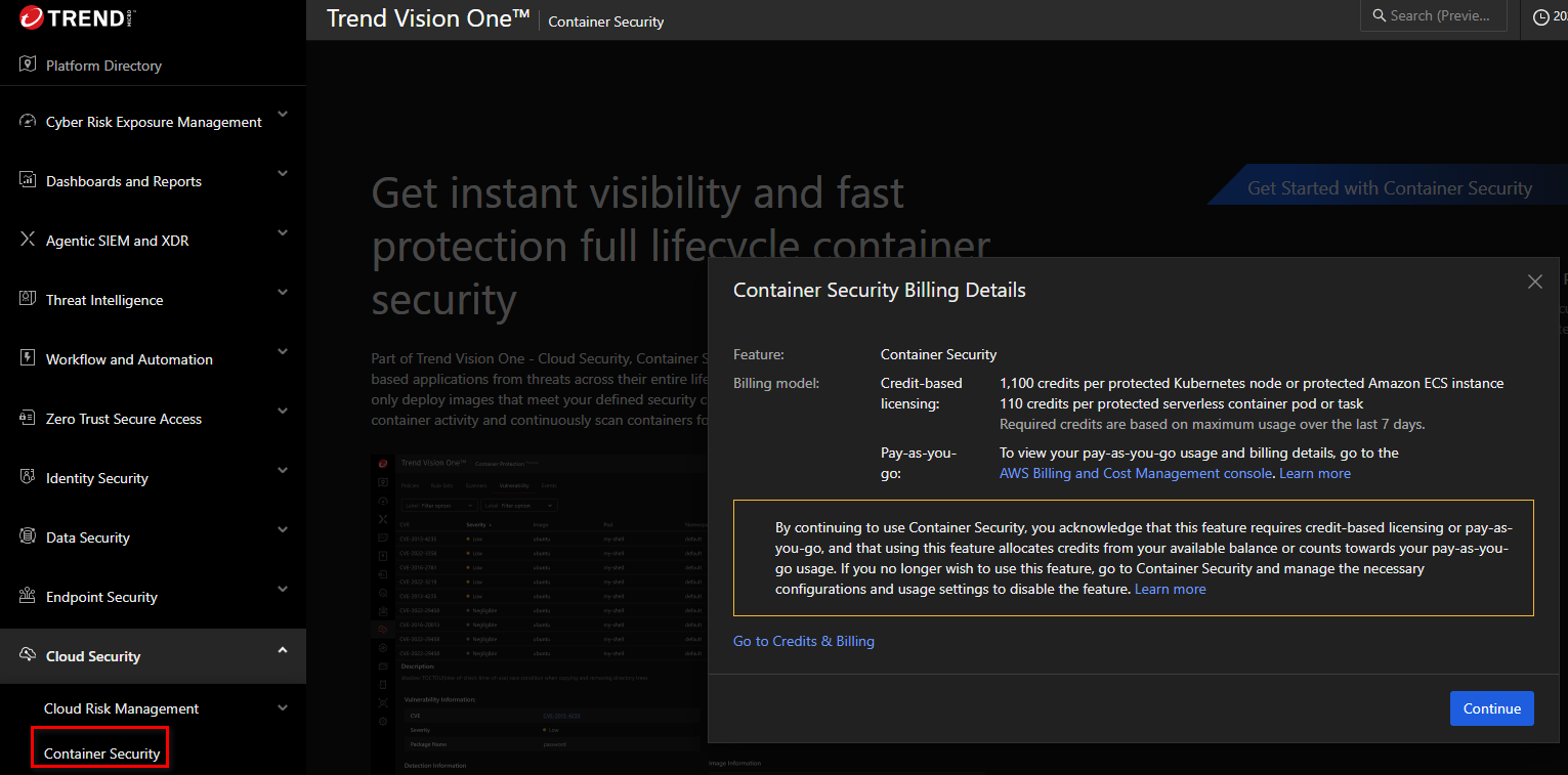 Trend Micro Vision One là một nền tảng bảo mật giúp giám sát và bảo vệ các container, phát hiện lỗ hổng bảo mật, và chặn các mối đe dọa từ khi build cho đến lúc chạy trên production.